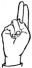 На ћирилици написано БЛАЖА ДОДИЋ састоји се из 10 слова [?]. Исписано ћириличном једноручном азбуком за глувонеме: